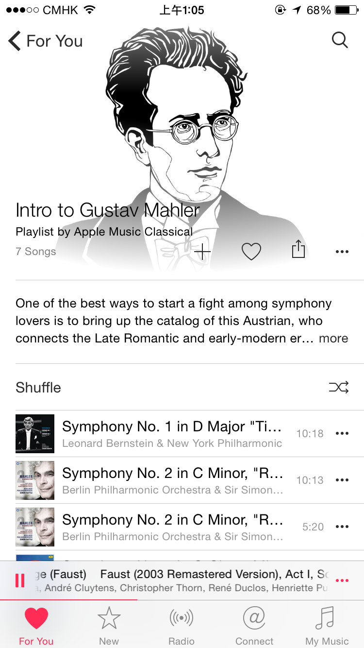 總結:Apple Music就像是Apple自家版的Spotify。功能上和Spotify也大同小異,但後者強調和社交網路的互動性。筆者試用了大約一個小時,整體來說還可以,古典音樂的資料庫還不及Spotify的大,不過勝在夠新,很多新發售的專輯都可以在這裡找到。當然,Apple Music亦有Spotify所沒有的功能(例如觀看Music Video)。至於是否值得付錢使用?筆者還抱著觀望態度,用完這三個月免費試用再作打算。但如果你喜歡日韓歌曲的話,Apple Music無疑是繼KKBox後另外一個好選擇。至於Android用家,Apple表示“Apple Music will be available for Android users this fall”,很快會有的了!