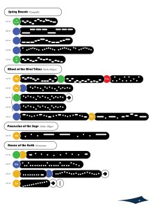 以上擷自史特拉汶斯基當時為《春之祭》撰寫的曲目介紹。自《火鳥》於1910年首演後,他有感自己可以創作出一首比《火鳥》更前衛更創新的作品。不久,史特拉汶斯基拜訪他的好友羅烈治,談到了這個怪異的夢。